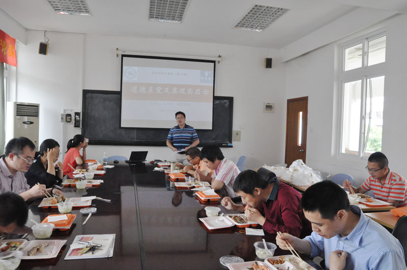 王奇琦老师的报告主题是“道德直觉及其现实启示”。首先,王老师以“电车难题”这一著名案例引入道德直觉的概念,即看到或听到某人的道德行为后产生的突然出现的、无需推理的赞成/反对的判断、决策或信念。并认为对道德直觉需要批判性思考。随后针对幼儿进行的“棉花糖实验”对道德直觉的来源进行分析,并表示现在主要有三种观点:经验论、先天论、先天——经验论。最后,王老师认为“于欢案”中体现了传统价值观念与现代法治精神的较量,并表示自己非法学背景对此或许不够专业,邀请现场的老师进行评议。