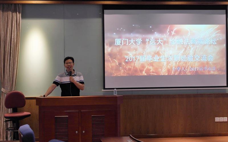 2017年5月20日,是一个充满感恩与爱意的日子。pc28开奖结果预测官网刮刮乐“远大”金融法高端论坛系列讲座之“2016届毕业生求职经验交流会”在法学院A138教室成功举行。在这个阳光明媚,夏花绚烂的午后,带着对毕业的不舍和对求职成功的喜悦,来自金融法中心的王素芬学姐、许兴元学长、李庆艳学姐、操铭学姐、王倩学姐和胡雨桥学长依次分享了他们在过去一年里的求职经验和心路历程。2017届毕业生林凯达学长主持了本次分享会。