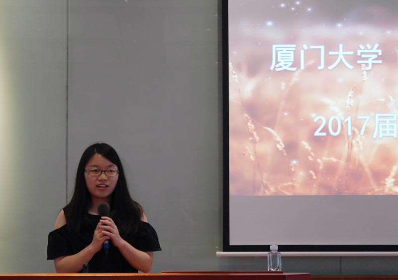 接下来,操铭学姐详细地向大家全方位介绍了求职途中需要注意的问题。首先,她站在女生的视角告诉同学们一定要调整好心态,女生们要正视在求职中遇到的困难,每一位同学也要坚持不气馁,即使在秋招、春招都没有合适的工作,之后仍然会有好的机会,只要付出努力就不会被抛弃。其次,学姐提醒同学们要不断提升自己的眼界,不必局限于特定的地域、行业或者业务类型,鼓励大家多多尝试。再次,学姐告诫同学们,在求职途中一定要有计划性,不断靠近目标,积累经验,丰富简历。最后,学姐告诉同学们一定要多与老师、同学交流信息,许多实习机会都难以自己争取,需要人脉。而且有了师长们的教诲,也能少走弯路,避开一些业界口碑不佳的用人单位。