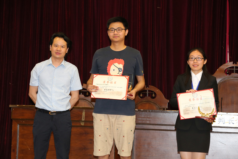 (法学院郑金火助理教授、思明区人民法院王晨安法官为“优秀辩手”颁奖)