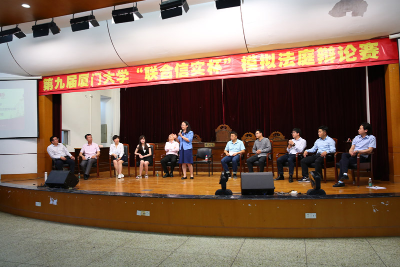 决赛由厦门市中级人民法院刑一庭法官彭亚奴,厦门市人民检察院公诉一处副处长陈宇,思明区人民法院法官林鸿、王晨安福建联合信实律师事务所高级合伙人、刑事办主任吕平组成合议庭,陈宇检察官担任审判长。
