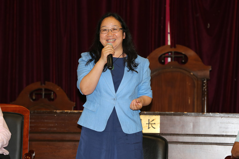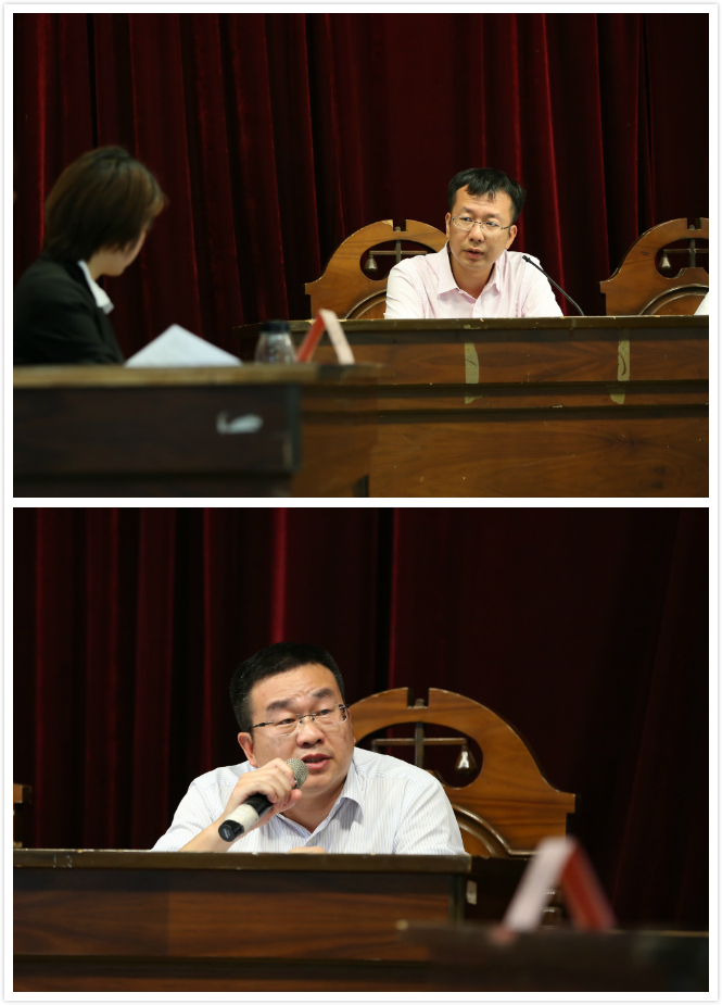 短暂的中场休息后,本届比赛的最大亮点,赛事研讨会拉开帷幕。研讨会由法学院副院长李兰英教授主持,除了五位决赛评委外,法学院法理学教研室教授周赟、刑法学教研室助理教授郑金火、武汉大学法学院团委书记杨辉、福州大学法学院老师蒋凌申和李辞一同上台参与讨论。