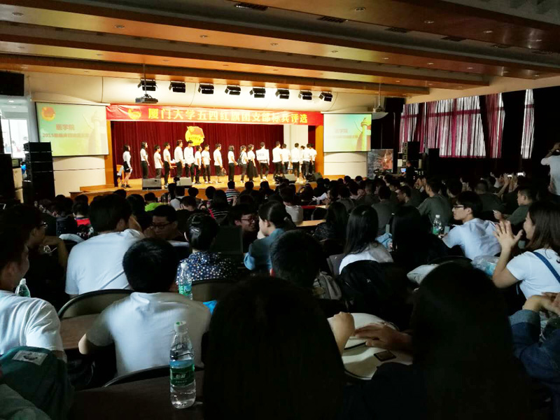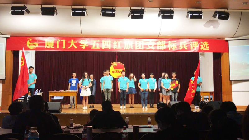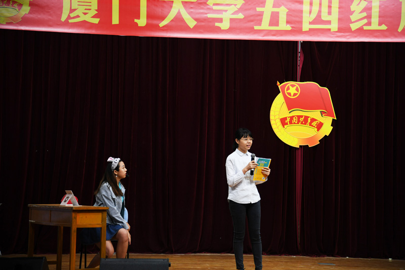 法学院2015级3班更是对此次评选比赛严阵以待,精心准备了自己的班团节目,获得了在场各位的啧啧称赞。他们以莫兰蒂台风席卷厦门为故事的脚本,将风雨到来时团支部指导、帮助班级同学平安度过灾难并有序组织灾后修复的工作状态搬上舞台,在那一方小小的台子上铭刻下一个班级团结互助的身影。