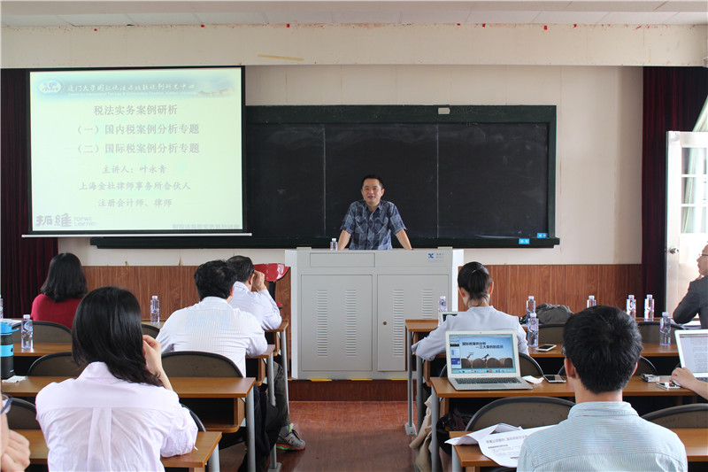 2017年4月8-9日,由pc28开奖结果预测官网刮刮乐国际税法与比较税制研究中心(CITACT-XMU)与福建拓维律师事务所联合举办的“pc28开奖结果预测官网刮刮乐‘拓维’财税法高级实务系列讲座”第24-27讲“税法实务案例研析”在pc28开奖结果预测官网刮刮乐A302教室顺利举行。本场讲座有幸邀请到上海金杜律师事务所合伙人叶永青律师担任主讲人。德勤华永会计师事务所厦门分所税务总监吴焕琛先生、高级经理乔彬彬女士和高级税务顾问卢静函女士也应邀参加了8日上午的讲座。