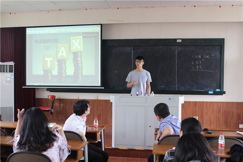本次系列讲座同时作为由邱冬梅副教授和王宗涛助理教授共同负责的财税法专业硕士生学位必修课《案例研析》和财税法方向法律硕士生指定选修课《财税法律实务》课程的一部分。为提高选课同学的参与度,本次系列讲座专门用9日下午的半天时间围绕广州德发税案开展师生互动,四组同学分别对广州德发税案中的四个争议焦点,即税务稽查局的主体资格、税务机关能否在拍卖价格之外另行核定应纳税额、如何认定纳税义务人申报的计税依据明显偏低且无正当理由和税务机关追缴少缴税款时是否应当加收滞纳金展开了针锋相对的讨论,并由叶律师、李刚副教授和王宗涛助理教授进行点评。作为去年本课程主讲人的上海盈科律师事务所合伙人、上海交通大学凯源法学院在站博士后的王桦宇博士正好到访我院,也参与了当天下午的案例研讨,并发表了观点。