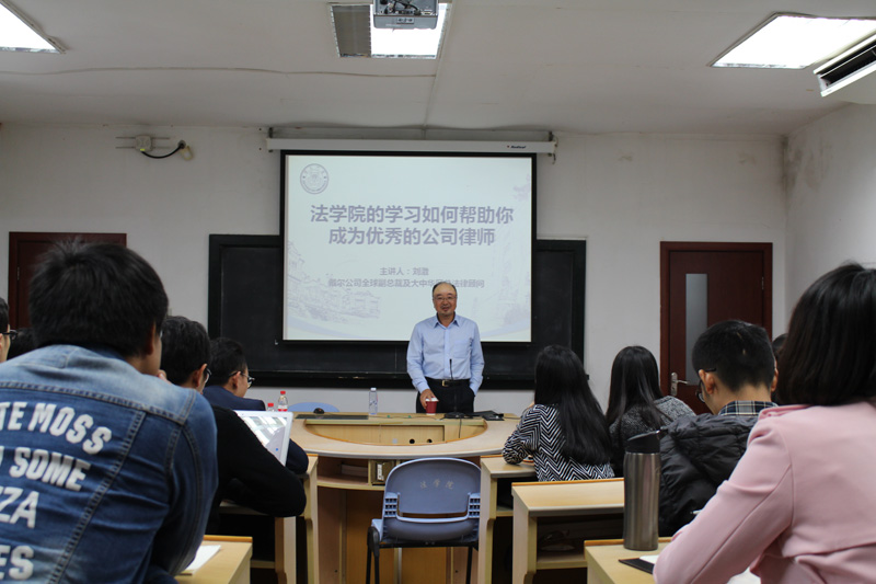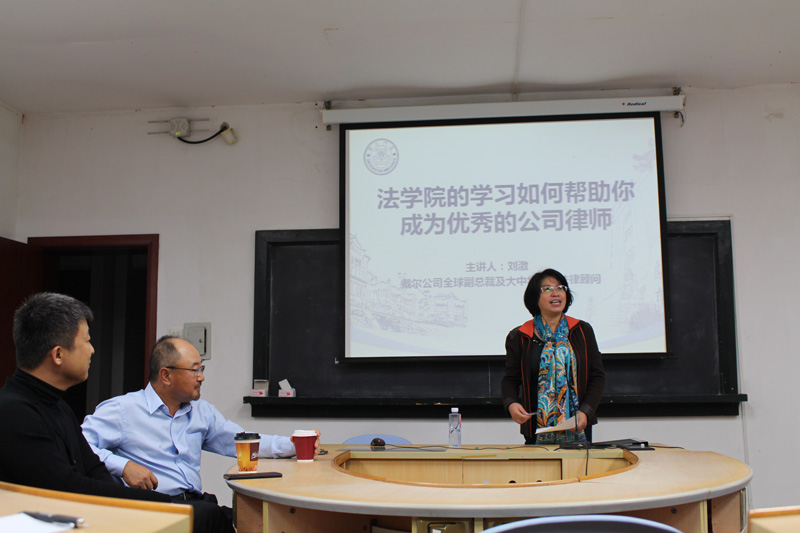 2017年1月11日晚19:00,一场主题为“法学院的学习如何帮助你成为优秀的公司律师”的专题讲座在我院B520举行。本次主讲人为戴尔公司的全球副总裁及大中华区总法律顾问刘激先生。我院何丽新老师也参加并主持了本次讲座。