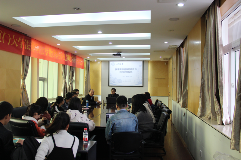 2016年12月24日上午9:00,北京大学法学院党委书记、副院长,全国法律专业学位研究生教育指导委员会委员,中国法学会民事诉讼法学研究会副会长潘剑锋教授为我院师生带来了“民事再审程序的特殊性和独立性反思”专题讲座。讲座在法学院C419教室举办,吸引了我院本科生以及硕士、博士研究生积极参加。诉讼法教研室的齐树洁教授和张榕教授参与了讲座。