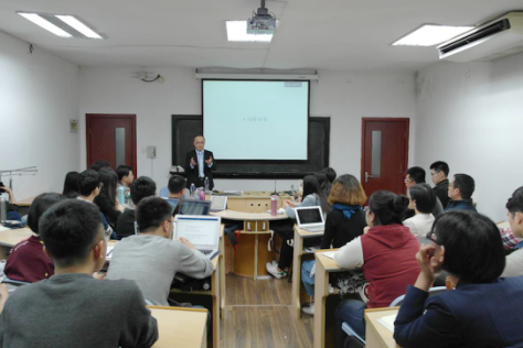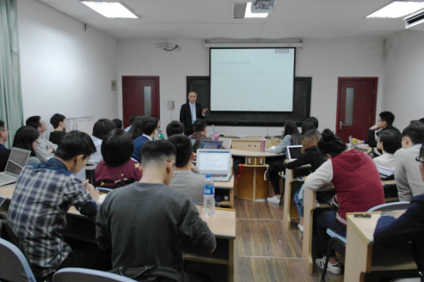 讲座开始,谢老师从一段经典视频引入,由玻璃罐装下高尔夫球、石子、砂砾的小故事,教导同学们把握人生的“高尔夫球”,把精力投入到最热爱、有意义的事业中去。