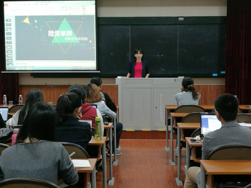 在沙龙正式开始前,肖伟教授对五位嘉宾进行了简短的介绍。随后,11位主讲同学依次上台为大家分享了他们关于“野蛮人举牌”的观点。2015级法律硕士陈罡同学率先发言,他从背景与概况、原因分析、风险归纳、策略建构等四个方面展开论述,突出体现了用数据和事实说话。2015级法律硕士林星晨同学先以时间为序对险资举牌的官方回应做了梳理,然后对险资举牌是否违规等一系列焦点问题展开分析。2015级法律硕士杨广敏同学立足于个案管中窥豹,以伊利股份公司章程修改为例,对反收购条款的适用展开了评析。2015级法律硕士郑江文同学结合立法现状,从收购与反收购的角度提出了相关建议。2015级法律硕士杨凯凡同学精美的PPT让所有人眼前一亮,他通过分析被举牌企业与思考反收购措施,主张一切都以完善公司治理模式为最终的落脚点。2016级国际法硕士王蕾同学通过横向比较各国对于险资进行股权投资的法律规制,强调了信息披露在险资进行股权投资中的作用。2016级财税法硕士贾晓琳同学认为对保险公司的举牌行为既不应禁止也不应放任,强化监管尤其是强化举牌过程中的信息披露才是正确选择。2016级经济法硕士廖永儀同学主张从股东权的性质入手解决险资介入被收购上市公司的经营问题——若为消极性共益权之行使则许可,若为积极性共益权之行使则禁止。2016级经济法硕士卢熠同学认为险资与其他资金并无二致,证券监管的核心在于充分的信息披露。2015级法律硕士文思思同学强调,监管机构保监会在万能险投资以及日常监管方面仍需加大监管力度。最后发言的是16级民商法硕士何俊蓉同学,她从问题的提出、分析,解决三个角度有的放矢地陈述了自己的看法。同学们发散式的思维与落落大方的演说博得了阵阵掌声。