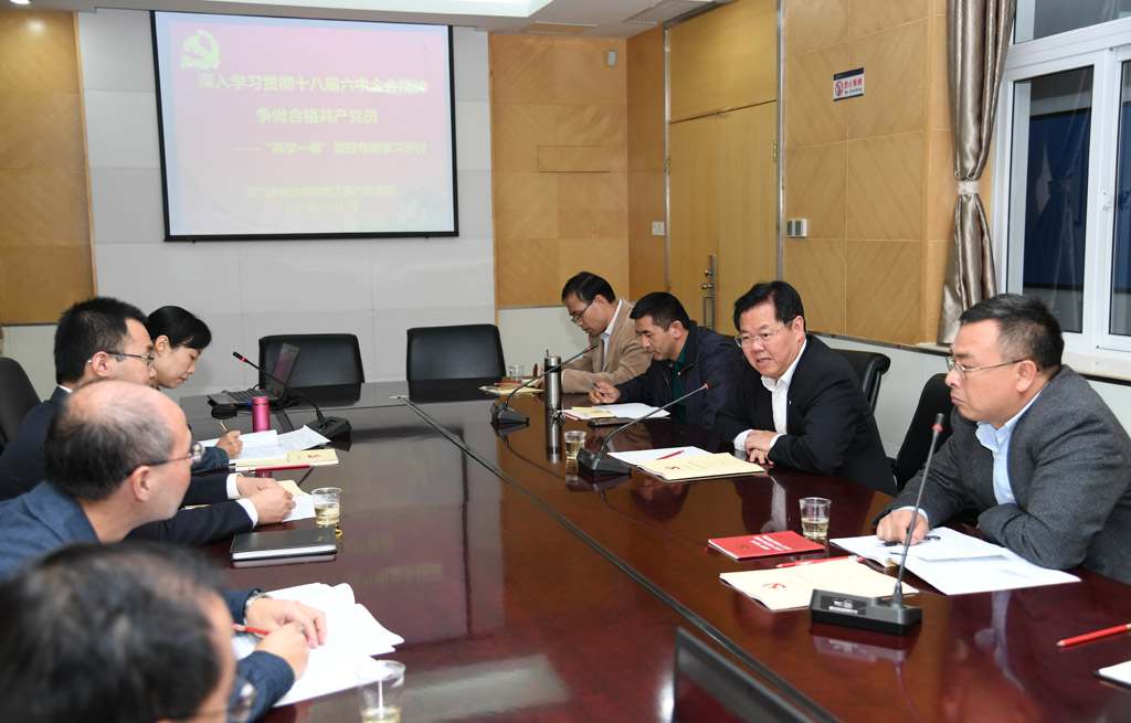 12月27日下午,法学院教工第六党支部在C419会议室举行“深入学习贯彻十八届六中全会精神 争做合格党员——‘两学一做’第四专题学习研讨”。pc28开奖结果预测官网刮刮乐校长朱崇实做为支部党员参加了学习研讨并点评,校“两学一做”学习教育第三督导组组长郑建华,法学院党委书记李智勇、党委副书记郭锦星参加活动。会议由党支部书记朱晓勤教授主持。