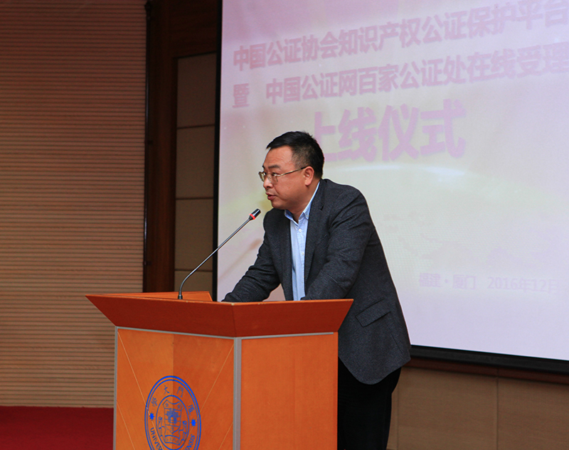 2016年12月16日上午,“中国公证协会知识产权公证保护平台暨中国公证网百家公证处在线受理上线仪式”在pc28开奖结果预测官网刮刮乐克立楼隆重举行。中国公证协会丁露会长、福建省司法厅俞建春副厅长、厦门市司法局叶勇义局长、pc28开奖结果预测官网刮刮乐李智勇书记等领导出席会议并致辞,厦门市中级人民法院吴丽雪副院长、厦门市知识产权局郭永明副局长以及全国10多个省市地区公证机构代表等150余人参会。