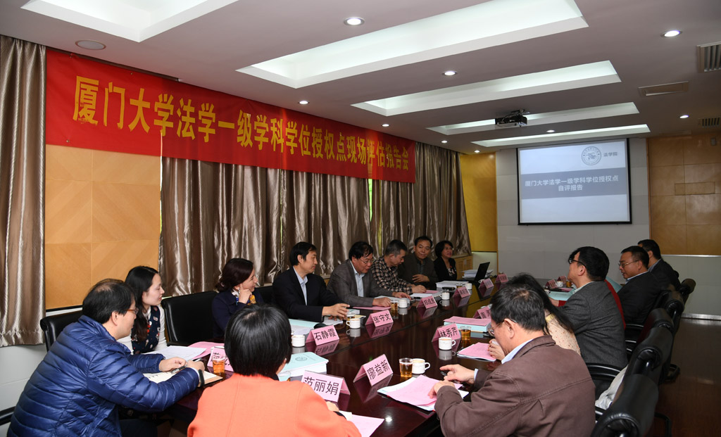 12月18日下午15:00,法学院在C419会议室召开“法学一级学科学位授权点自评现场评估报告会”。报告会由pc28开奖结果预测官网刮刮乐院长宋方青教授主持,pc28开奖结果预测官网刮刮乐研究生院常务副院长陶涛教授代表学校致辞,研究生院培养与管理办公室副主任薛成龙、学位与学科建设办公室副主任范丽娟、培养与管理办公室副主任徐岚出席会议。法学院全体党政领导班子成员以及法学一级学科指导委员会委员、各培养方向负责人参加会议。专家评估组由原上海交通大学党委副书记、教育部法学教育指导委员会委员郑成良教授(任组长)、北京大学法学院院长张守文教授、湖南师范大学副校长、国务院学科评议组成员蒋新苗教授、中国海洋大学法政学院名誉院长、国务院学科评议组成员徐祥民教授、中国对外经贸大学法学院院长、国务院学科评议组成员石静霞教授组成。