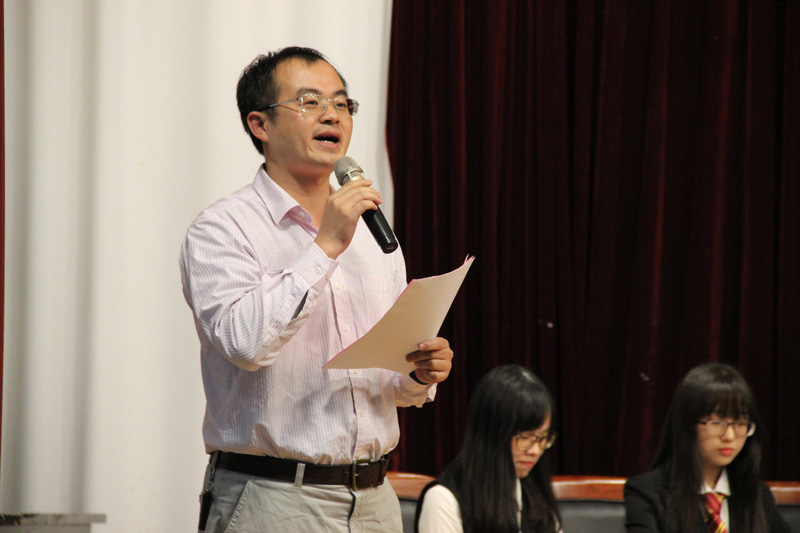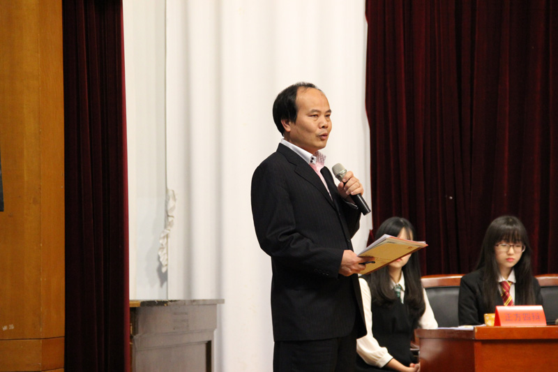 郑金火老师与吴旭阳老师分别就双方辩手的表现做了简要点评。两位老师肯定了双方辩手的精彩表现,并且一致认为正方的观点更具正确性,但反方辩手的辩论技巧更胜一筹。吴旭阳老师还结合法律知识对辩题做了独特的论述。