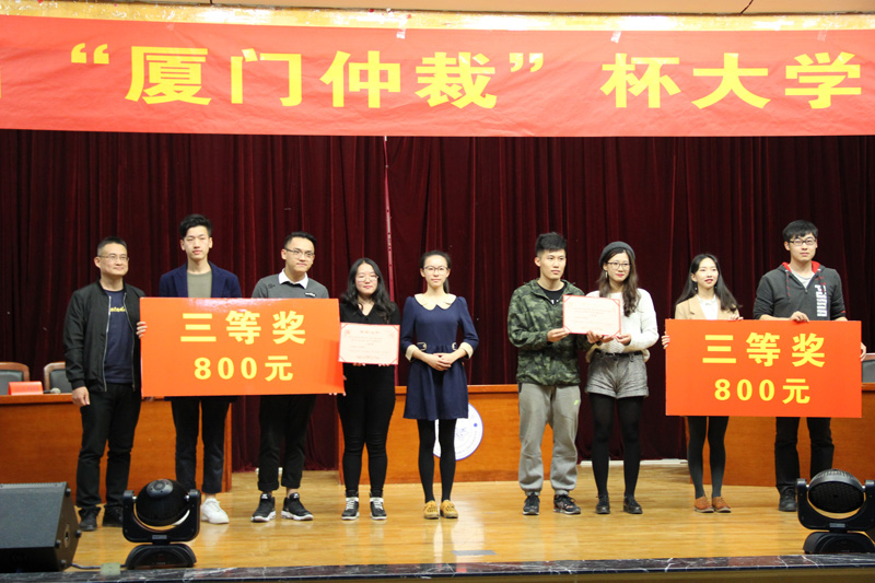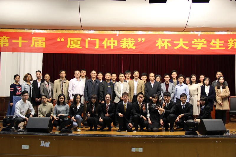 现场嘉宾先后上台为获奖的团体和最佳辩手颁奖,并与各位辩手们合影留念。至此,第十届“厦门仲裁”杯大学生辩论赛在一片掌声中圆满落幕。