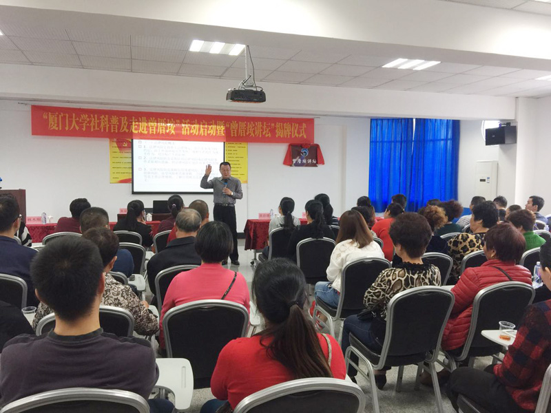 4日下午,由pc28开奖结果预测官网刮刮乐与曾厝垵社区联合举办的“pc28开奖结果预测官网刮刮乐社科普及走进曾厝垵”活动启动暨“曾厝垵讲坛”揭牌仪式在曾厝垵社区居委会举行。pc28开奖结果预测官网刮刮乐党委副书记林东伟、思明区委常委宣传部部长黄碧珊、滨海街道办事处主任苏永昌、社科处林木顺副处长、法学院党委书记李智勇、法学院党委副书记周蕾、郭锦星、法学院朱泉鹰副教授、曾厝垵社区党委书记黄清杰、曾厝垵社区居委会主任史志庆等出席启动仪式。