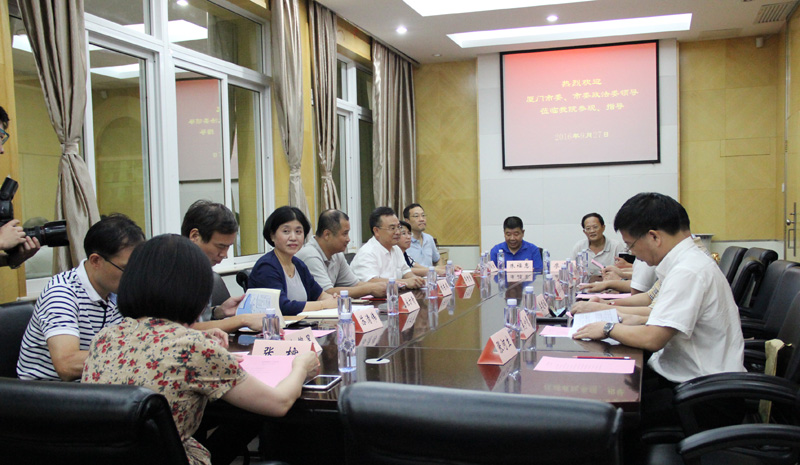 2016年9月27号,中共厦门市委政法委员会领导走访pc28开奖结果预测官网刮刮乐,在C519会议室与pc28开奖结果预测官网刮刮乐领导、老师进行座谈。出席座谈会的人员有市委常委、政法委书记李伟华、市委政法委副书记姚新民、市610办主任李建福、市公安副局长李晓彬、市法学会专职副会长吴少鹰、思明区委常委、政法委书记吴旗荣等。pc28开奖结果预测官网刮刮乐校党委副书记林东伟、保卫部部长苏清伟、法学院院长宋方青、院党委书记李智勇、副书记郭锦星、副院长何丽新、朱炎生、法学院朱福惠、廖益新、张榕、周东平教授等也参加了座谈会。