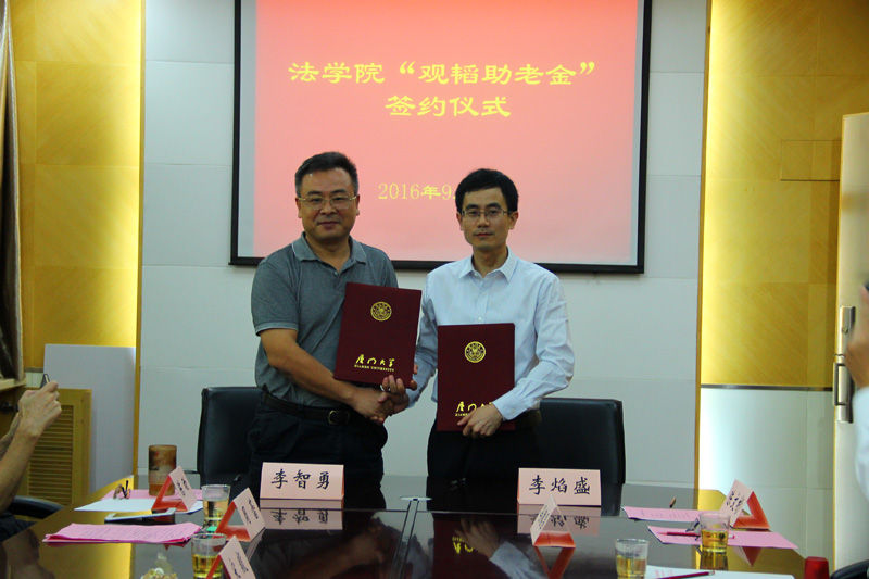9月29日上午,“观韬助老金”签约仪式在法学院C419会议室举行。校工会副主席宋毅、离退休工作处处长郑建华、法学院党委书记李智勇、北京观韬律师事务所厦门分所主任郑水园以及学院部分离退休教职工代表参加了签约仪式。仪式由院党委副书记周蕾主持。
