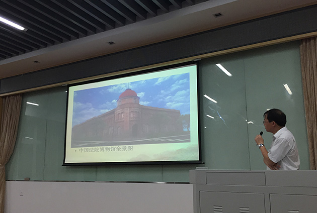 欲知大道,必先为史。2016年6月30日晚,厦大信实论坛之“如何将法治的灵魂装到一栋古建筑中——中国法院博物馆布展思路及部分珍贵法治文物简介”在我院B137室顺利举办。讲座由最高人民法院中国法院博物馆创馆人员、文物处负责人王江龙老师主讲,法律史教研室吴旭阳老师主持。厦门市思明区人民法院副院长张嵘法官、厦门市中级人民法院行政装备处处长郑金雄法官、厦门市中级人民法院研究室副主任黄鸣鹤法官、法律史教研室主任周东平教授参与座谈,法律史与法学理论专业硕士生及外专业学生到场聆听。