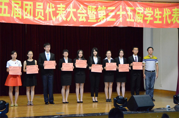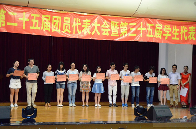 接下来大会进行2015-2016年度法学院优秀学生工作者表彰仪式,本次大会共表彰优秀学生骨干24人 、学生工作积极分子46人、先进班级体3个。由团委书记高斌老师宣读名单,由高斌老师和林旭荣老师进行颁奖。