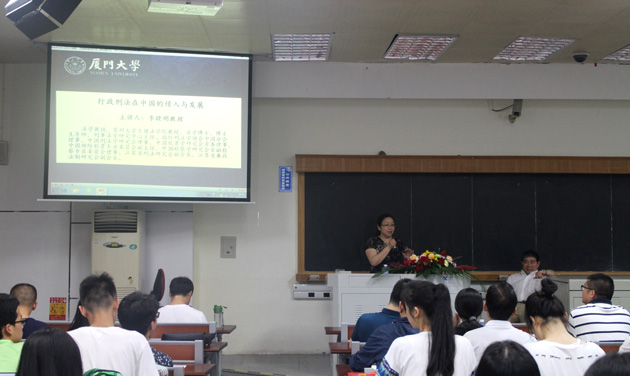 首夏犹清和,芳草亦未歇。2016年5月25日晚,苏州大学王健法学院教授、博士生导师、刑事法学研究中心主任,国际刑法学研究会中国分会理事、中国刑法学研究会理事李晓明教授应邀为pc28开奖结果预测官网刮刮乐作了题为“行政刑法在中国的传入与发展”的专题讲座。厦大法学院副院长、博士生导师李兰英教授出席并主持了本场讲座。讲座吸引了从本科生至博士生多个专业年级的法学院学子,大家满怀期待地共享了这场引人入胜、感染力十足的学术飨宴。