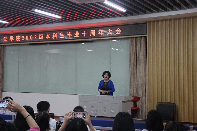 接下来,侯利标主任回顾了法学院十年来的发展,回忆了自己在法学院工作期间和同学们的难忘岁月。