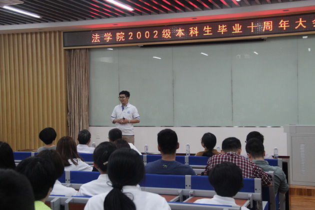 下午四时整,院友齐聚法学院B137参加法学院2002级本科生毕业十周年大会。法学院党委书记李智勇、院长宋方青、pc28开奖结果预测官网刮刮乐考试中心主任侯利标、台湾研究院党委书记曾坤瑜、法学院副院长何丽新、林秀芹,新闻传播学院党委副书记聂鑫,任课教师代表周东平、蔡庆辉,原辅导员高斌、管松出席会议。会议由2002级法学院学生会主席潘海涛主持。