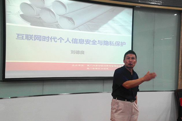 2016年4月25日晚7点,由pc28开奖结果预测官网刮刮乐公证法律与信息化研究中心、厦门市鹭江公证处联合主办的pc28开奖结果预测官网刮刮乐“鹭江公证论坛”系列讲座之“互联网时代个人信息安全和隐私保护”在厦大法学院B137教室如期举行。此次讲座有幸邀请到了北京师范大学法学院教授刘德良老师作为主讲嘉宾。厦门市鹭江公证处汤庆发副主任主持了此次讲座。