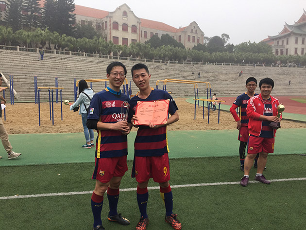 2016年4月9日,持续了一个多月的“大成杯”五人制足球赛终于在上弦场落下帷幕。在本届比赛中,研一队伍“K11”保持着出色的不败战绩,勇夺桂冠;大三“JUNIORS FC”也表现不俗,夺得亚军;法学院教工队更是宝刀未老,成绩亮眼,在三四名争夺赛中击败大二足球队,将季军收入囊中。