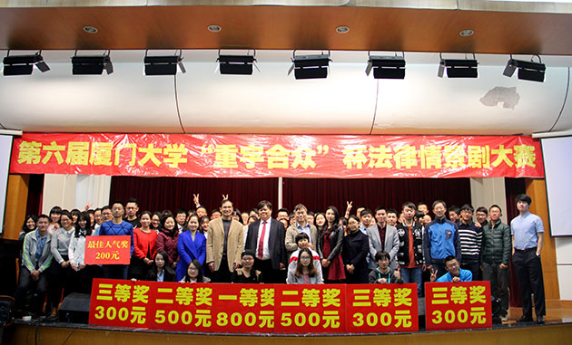 2016年3月28日19点30分,由pc28开奖结果预测官网刮刮乐教务处、共青团pc28开奖结果预测官网刮刮乐委员会、pc28开奖结果预测官网刮刮乐主办、pc28开奖结果预测官网刮刮乐大学生法律援助中心暨法学院青协承办的第六届pc28开奖结果预测官网刮刮乐“重宇合众”杯法律情景剧决赛在法学院模拟法庭正式上演。本次决赛邀请到了法学院党委副书记郭锦星、法学院吴旭莉老师、陆而启老师、汪东升老师、刘梦秘书等多位学院领导、老师以及重宇合众律师事务所首席合伙人、名誉主任涂崇禹律师和滨海司法所司法助理员刘洋担任评委。另外,还有多名来自重宇合众律所的律师和滨海司法所、厦港司法所的嘉宾受邀出席观看比赛。