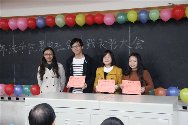 12月14日19:00,由pc28开奖结果预测官网刮刮乐团委主办的“2015年法学院暑期社会实践表彰大会”在法学院B138教室举行。出席本次表彰大会的嘉宾有法学院副院长李兰英,党委副书记周蕾、郭锦星,团委书记高斌,团委副书记林旭荣,研究生辅导员宋磊华,法学院教师卢炯星、刘永光、姜孝贤、董慧娟。