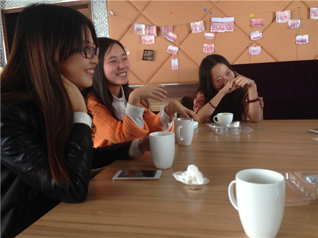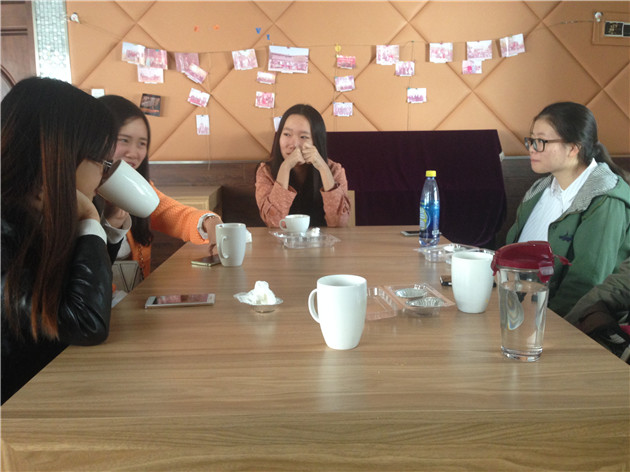 品尝着咖啡厅热气腾腾的饮品,在轻松温馨的氛围之下,班委们与交流生热情交谈,畅所欲言,现场气氛活泼愉悦,笑声不断。