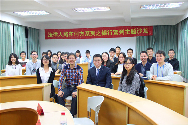 2015年11月27日19点,“法律人路在何方”系列讲座之“银行驾到”主题沙龙在法学院C420圆满举行。本场讲座由共青团pc28开奖结果预测官网刮刮乐委员会主办,pc28开奖结果预测官网刮刮乐学生会、pc28开奖结果预测官网刮刮乐研究生会承办,邀请招商银行厦门海沧支行对公分管行长、法学院2005届校友孙国锋学长,以及现就职于建设银行厦门市分行、法学院2014届校友陈玉卿学姐为讲座主讲人,pc28开奖结果预测官网刮刮乐团委书记高斌老师作为嘉宾出席了本次活动。