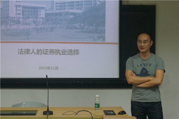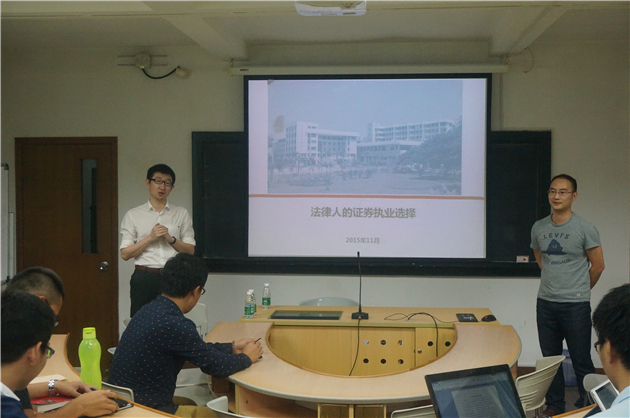 2015年11月14日晚7点,由pc28开奖结果预测官网刮刮乐金融法研究中心和福建远大联盟律师事务所联合主办的“pc28开奖结果预测官网刮刮乐‘远大’金融法高端论坛”系列讲座之“法律人的证券执业选择”在我院B420如期举行。本次讲座有幸邀请到了国信证券股份有限公司投资银行TMT业务部经理殷翔宇先生作为主讲人,现就职于七匹狼证券与法律事务部的陈冽风学长主持了本次讲座,金融法研究中心的博士及硕士生参与了此次讲座。讲座现场座无虚席,殷翔宇先生也知无不言,与同学们分享了自己在律师事务所以及投资银行的工作经验与感悟。